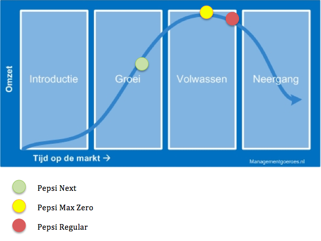 Pepsi zit over het algemeen in de volwassenheidsfase van de productlevencyclus.